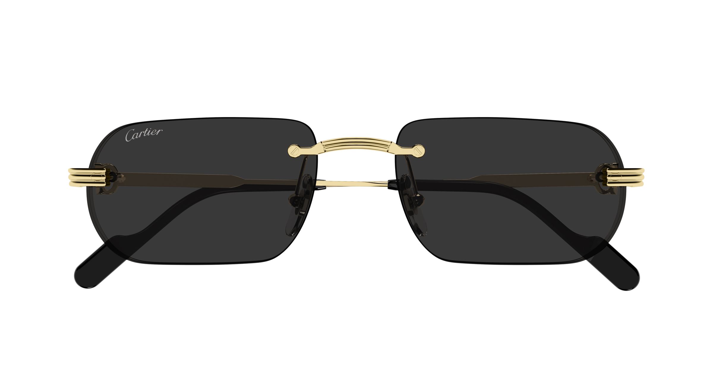 Este elegante diseño al aire de suave forma rectangular fácil de llevar se une a la existente estética atrevida de Première. Lentes gruesas realzadas con el emblemático detalle Godron a lo largo del perfil para un aspecto auténtico. Icónicas varillas decoradas con los detalles Signature C y Godron, actuando ambos como elementos funcionales y estéticos de la bisagra. Logotipo Cartier en los terminales de acetato inspirado en modelos retro y precioso acabado en oro o platino.