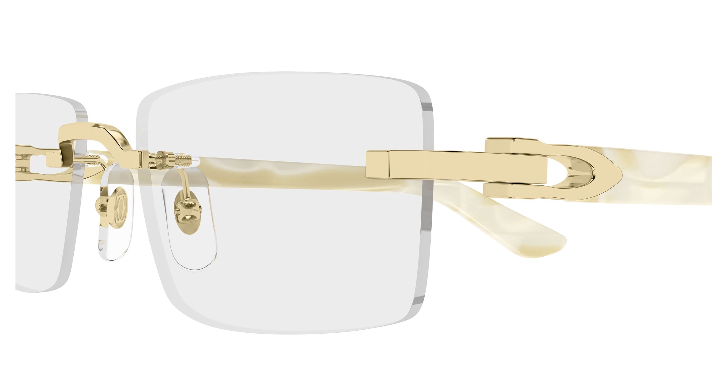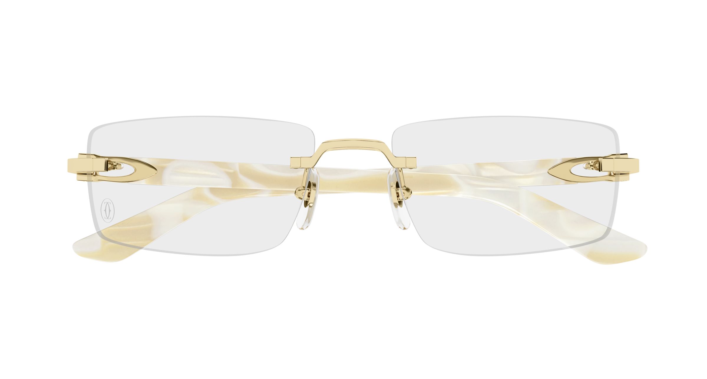 Reinterpretación contemporánea y sofisticada de las históricas varillas Décor C en versión combi. Diseño rectangular fácil de llevar con montura al aire. Detalle icónico de Décor C perfectamente insertado en las varillas de acetato, como elemento estético y funcional de la bisagra. Precioso acabado en oro o platino combinado con diversos colores de acetato.